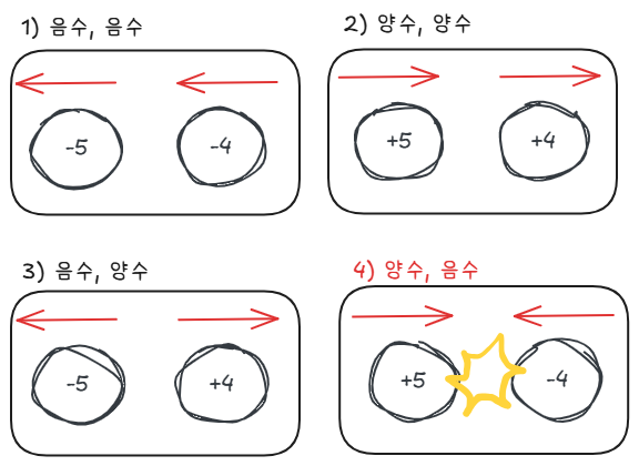 [4,-4] ꡬκ°μμ λ€μ μΆ©λμ΄ λ°μνκ³ , λ μνμ±μ ν¬κΈ°κ° λμΌνλ―λ‘ λ λ€ νκ΄΄λλ€.