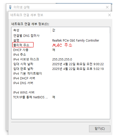 물리적 장비에 할당하는, 네트워크에서 각 장치를 고유하게 식별하는 주소